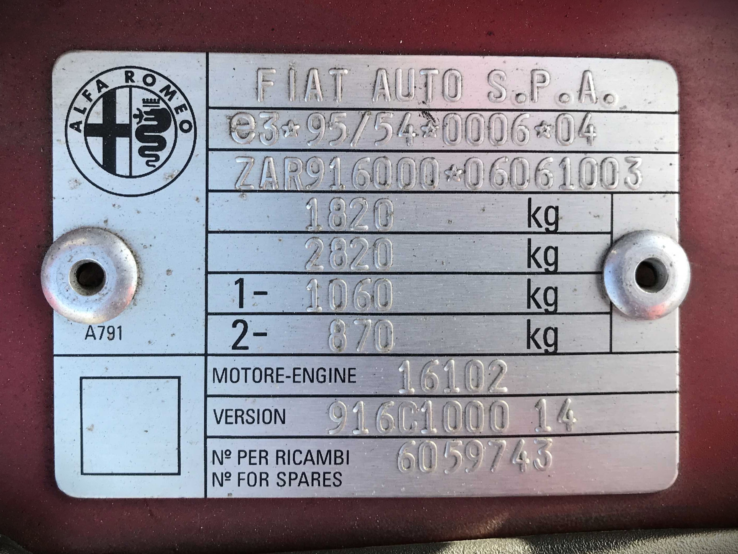 VIN: ZAR91600006061003